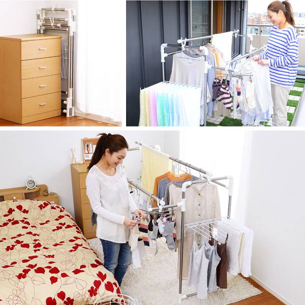 商品に関しまして【商品について】※このページは 万能物干し【2段タイプ】 のページです※■サイズ:(約)幅230×奥行88×高さ130cm(収納時サイズ(約):幅53×奥行10.5×高さ125cm)■素材:ステンレス・耐荷重:竿1本あたり約10kg・伸縮竿2本付き・竿受け予備2個付き■その他:・生産国:中国・梱包サイズ:(約)125×54×12.5cm・届いてすぐ使える完成品です(折りたたんだ状態で届きます)送料について配送について送料無料※沖縄・離島・一部地域を除く詳しくはお問い合わせ下さい。