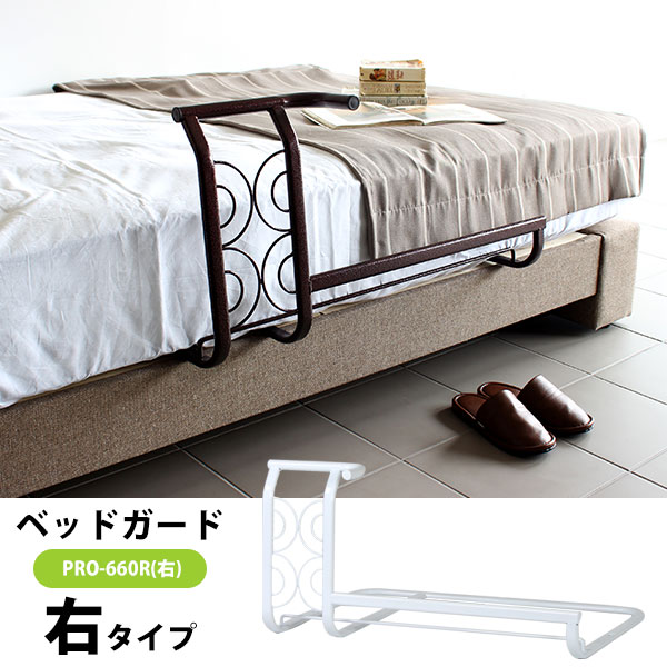■PRO-660R(右) ベッドガード サイズ:幅850 奥行き550 高さ450 mm材質:スチールパイプ(粉体塗装)カラー:ブロンズ/ホワイト※マットレスは、厚さ12cm以上をご使用ください【送料】※北海道・沖縄・離島は送料別途お見積もり※メーカー直送品のためご入金確認後2〜3営業日で出荷0183a00003/0183a00004こちらのベッドガードを利用すれば、足腰が弱っている方でも、ベッドから起き上がる時に、両手で取っ手をつかんで体を支えながら立ち上がることができ、日々の生活に安全と安心をもたらします。