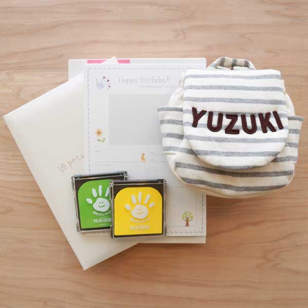 出産祝い 名入れベビーリュック 手形アートキットセット 命名台紙 フレームアルバム 成長記録 手形 足形 専用スタンプ付 ママ ベビー 赤ちゃん プレゼント 名前入り お祝い 誕生日祝い リシュマム